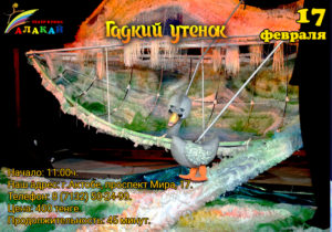 17 февраля театр кукол «Алакай» приглашает Вас на спектакль Х.К.Андерсена «Гадкий утенок» на двух языках (каз. и рус).